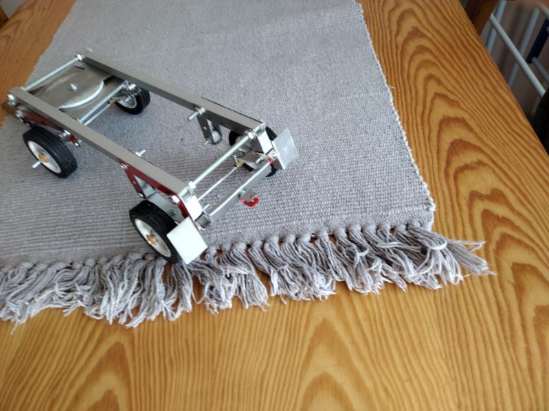 Pomału powstaje druga przyczepa d-47 więc ursusek został zaprzęgnięty do roboty z dwiema przyczepkami plus 4kg ładunku, miał co ciągnąć bo razem z wagą przyczep było w sumie 5 , 5,5 kg. naładowany pakiet lipo 12v starczył na godzinę jazdy. Myślę ze to ładny wynik syn jak będzie większy będzie się cieszył z zabawki :lol: https://youtu.be/0fu5xqGN6O4