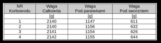 Szlifowałem korbowody i myślę, że jest teraz w miarę dobrze (załączam tabelkę z wagami). Wykonałem takie stanowisko pomiarowe, na którym ważyłem dodatkowo zawieszony korbowód raz waga była po stronie panewek a raz po stronie sworznia tłokowego.