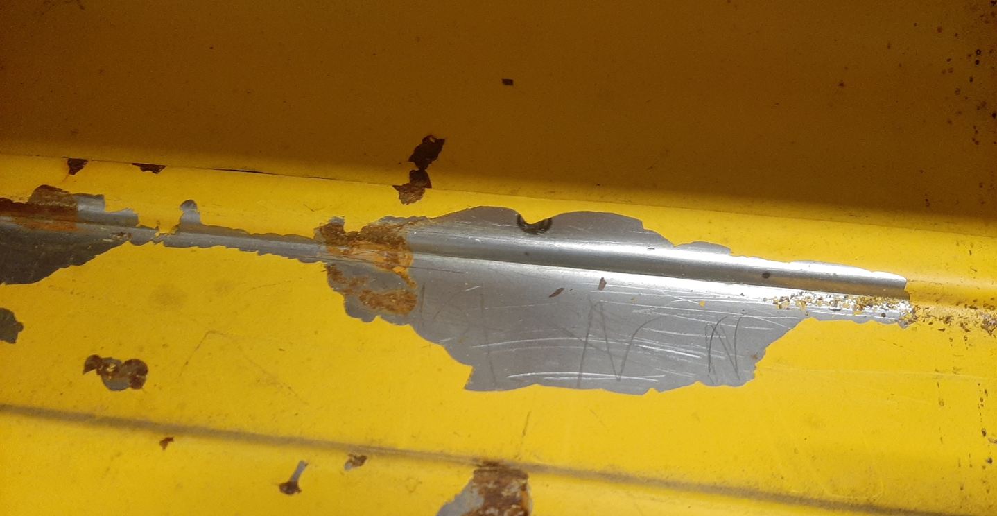 Pytanie jest, dlaczego teraz (po kilku latach od kupna) ta farba zlazła? Czyżby mrozy tego dokonały? No i ciekawe dlaczego w ogóle ta farba zlazła. Czyżby zła farba na podkład albo niedokładnie odtłuszczona blacha przed malowaniem?
