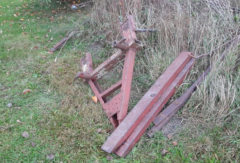 Od sąsiada dostałem do pospawania widły do palet na TUZ. To znaczy oryginalnie były widły do palet, ale ktoś odciął łapy i zamiast nich przyspawał kły balotów. Niestety zrobił to dość nieudolnie, i na spawie jeden kieł pękł (przegrzany). I w takim stanie to dostałem - jeden kieł, rama do TUZ i dwie łapy do palet.