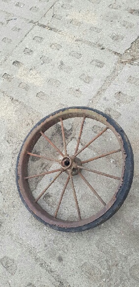 Tak z grubsza to wygląda, jest podobne jak koło od starego wózka do wożenia betonu na budowie, tzw. japonka...