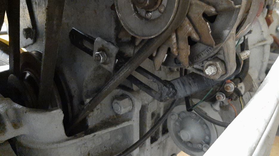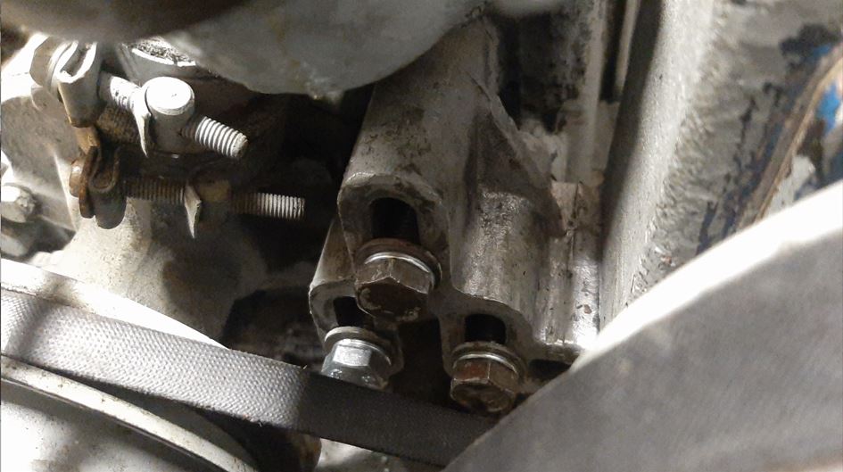 Zauważyłem też, że ktoś, kto przerabiał ten traktor z prądnicy na alternator źle pospawał napinacz paska od alternatora i przykręcił nie z tej strony. W efekcie praktycznie nie było regulacji naciągu paska, a napinacz przykręcili przez śrubę pokrywy rozrządu. Przeciąłem napinacz fleksą i pospawałem pod właściwym kątem, żeby nie kolidował z obudową i przykręciłem napinacz jak trzeba.